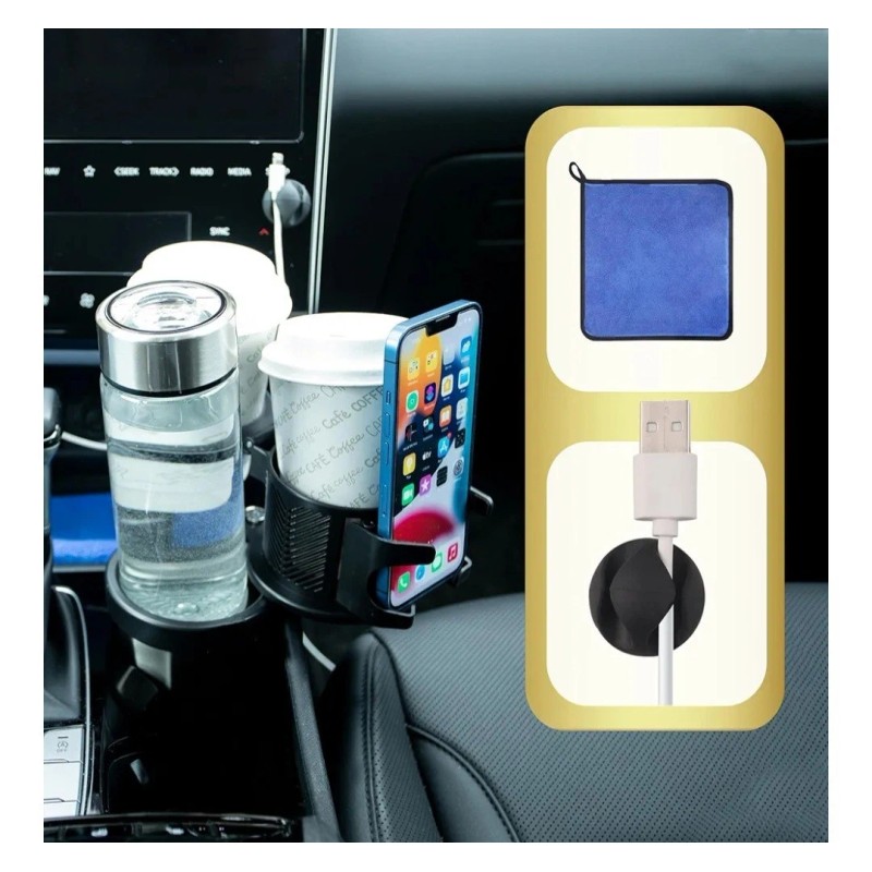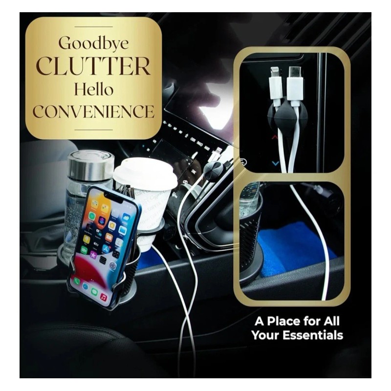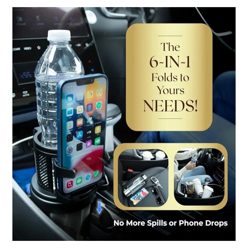 Araye 6 in 1 Car Cup Holder-Phone Holder/Mount, Temp Retaining- 3 Drink Compartments