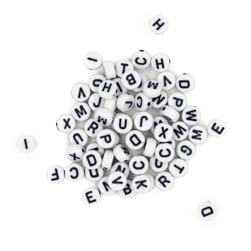 Arbee Alphabet Beads, 7 mm Size, White/Black