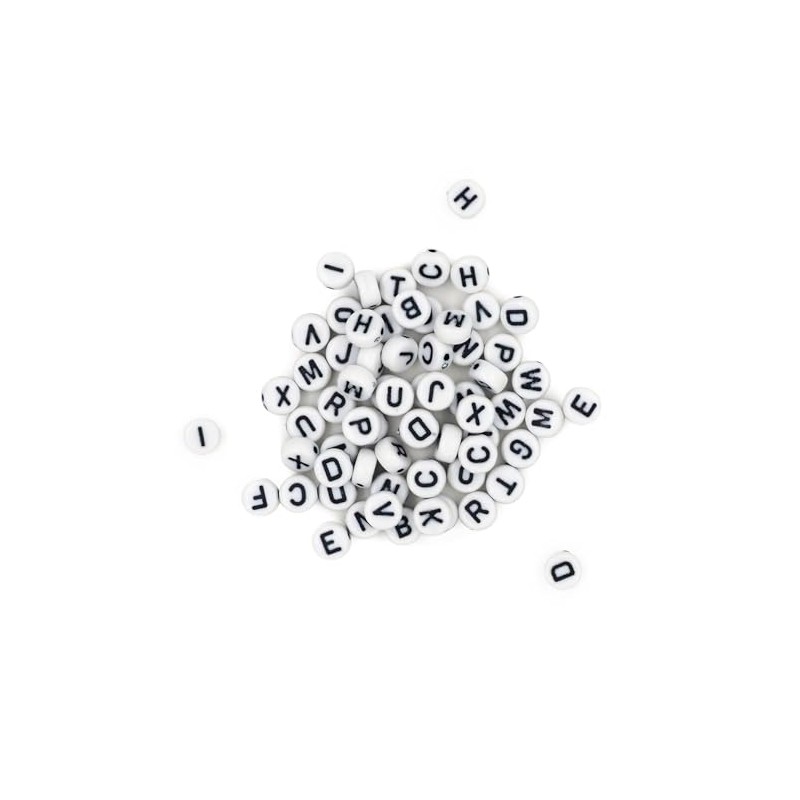 - Beads are white with black printed letters, providing high contrast and easy readability