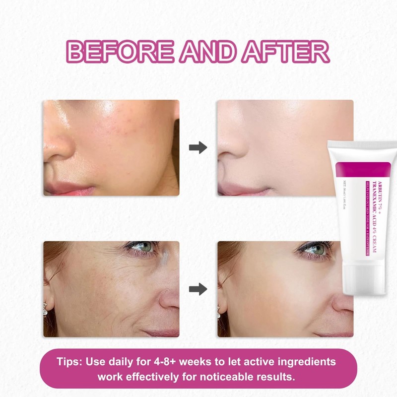 - 【Fast-Absorbing, Targeted Care】 This fast-absorbing spot cream for melasma offers effective care without irritation, layer 2-3 times as needed. The 7% Arbutin and 4% Tranexamic Acid cream gentle enough to be used daily, the brightening face cream with niacinamide is recommended to use it continuously for at least 4-8 weeks or more for the skin to fully absorb and adapt.