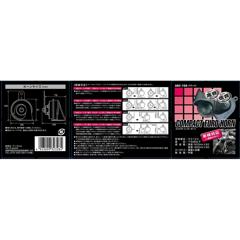- Sound Pressure: Less than 115dB MAX6A Frequency: HI/500Hz ±20 LO/400Hz ±20 Horn Size: 3.4 x 3.5 x 3.5 inches (86 x 81 x 89 mm), Rapper Mouth Size: 2.1 x 2.1 inches (54 x 54 mm)