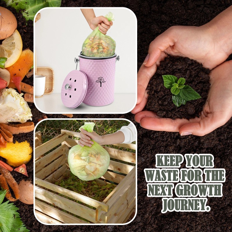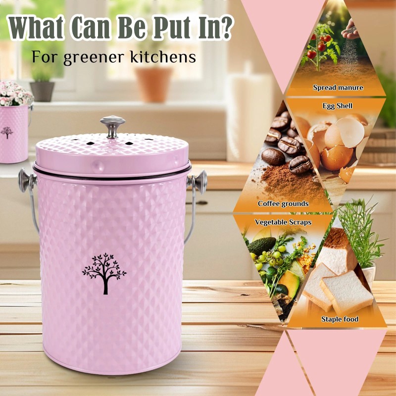 - 【ENVIRONMENTALLY FRIENDLY COMPOSTING】:The odorless compost bin is specially designed for home use, and it stores food waste without peculiar smell. The elegant appearance adapts to a variety of kitchen styles, and easily converts food waste into outdoor compost, which is fashionable and practical, and helps to protect the environment.