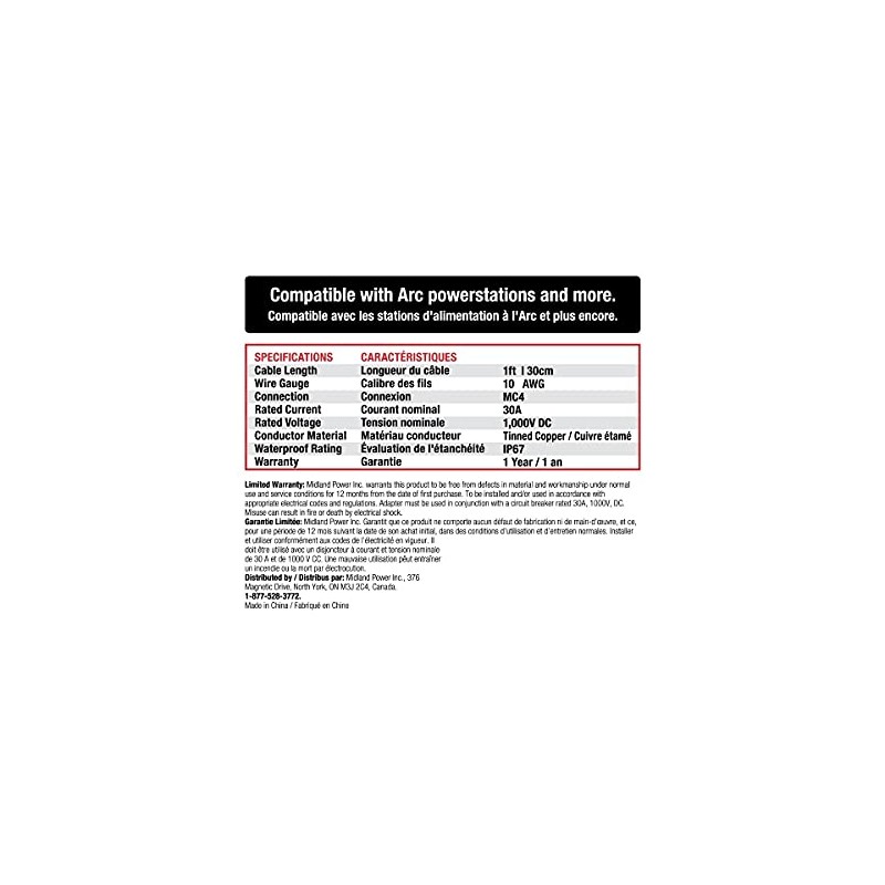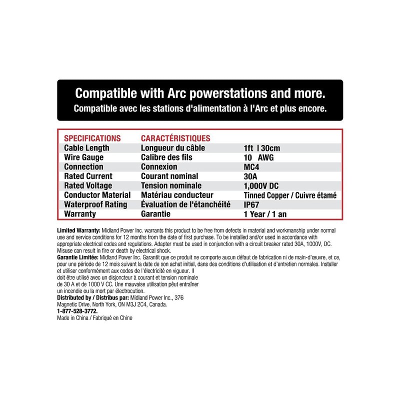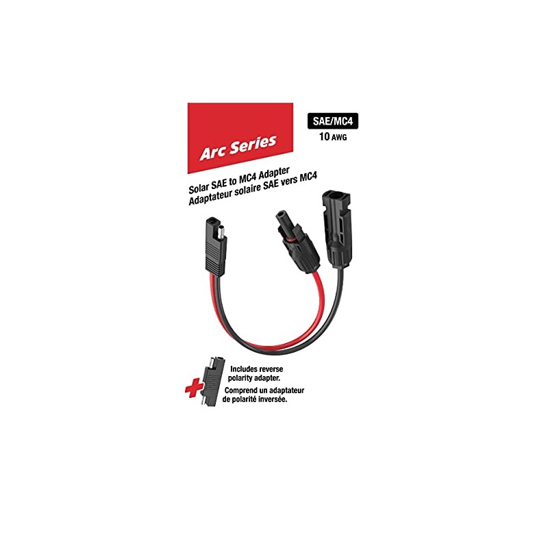 • The Arc Series SAE to MC4 Adaptor makes it easy to connect an SAE enabled solar panel with an Energizer Arc powerstation or connect an MC4 solar panel with an SAE input RV solar system.