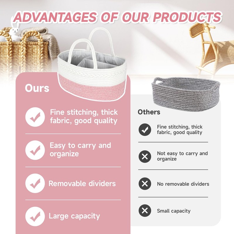 - Practical Design: This organizer measures 15 “L x 9 ‘W x 7 ’H (38.1 x 22.9 x 17.8cm), this cotton rope organizer has longer handles and is designed with removable compartments, you can create compartments in the organizer or remove the compartments and use the baskets to hold various items. Capable of holding household items such as office supplies, snacks, and books, it's an excellent way to maintain a tidy living space