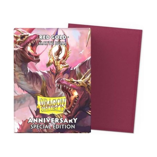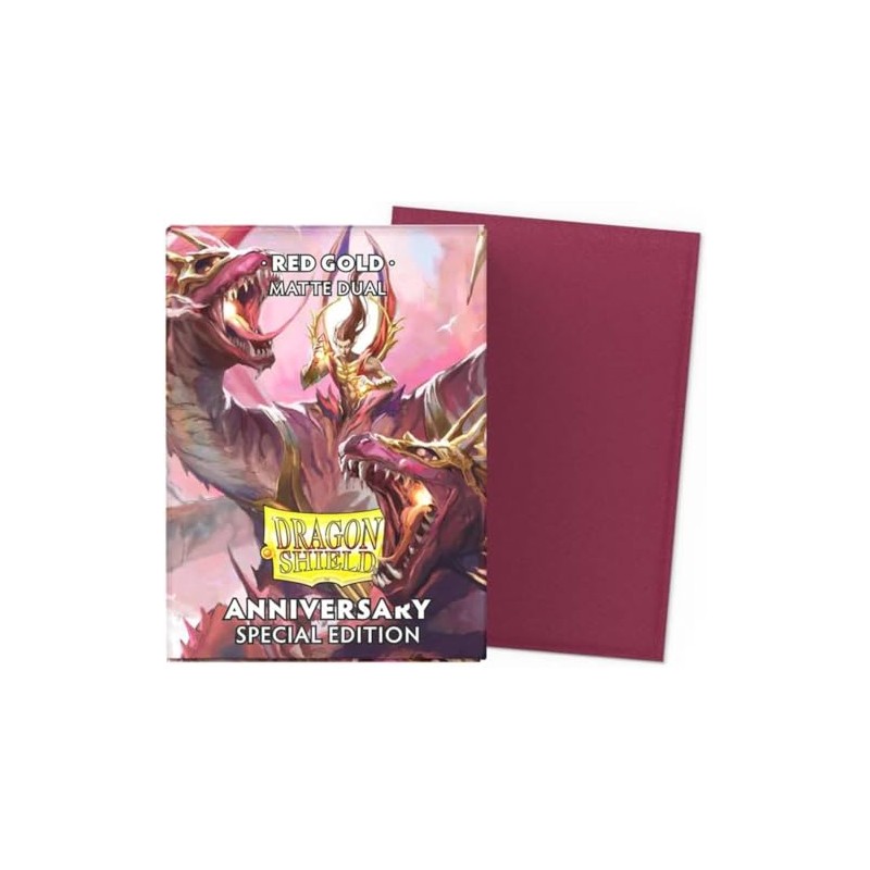 • A special edition Dragon Shield Matte Dual sleeve is now available in time for Dragon Shield's 25th anniversary. The Matte Dual sleeve features a red back and a golden interior.
