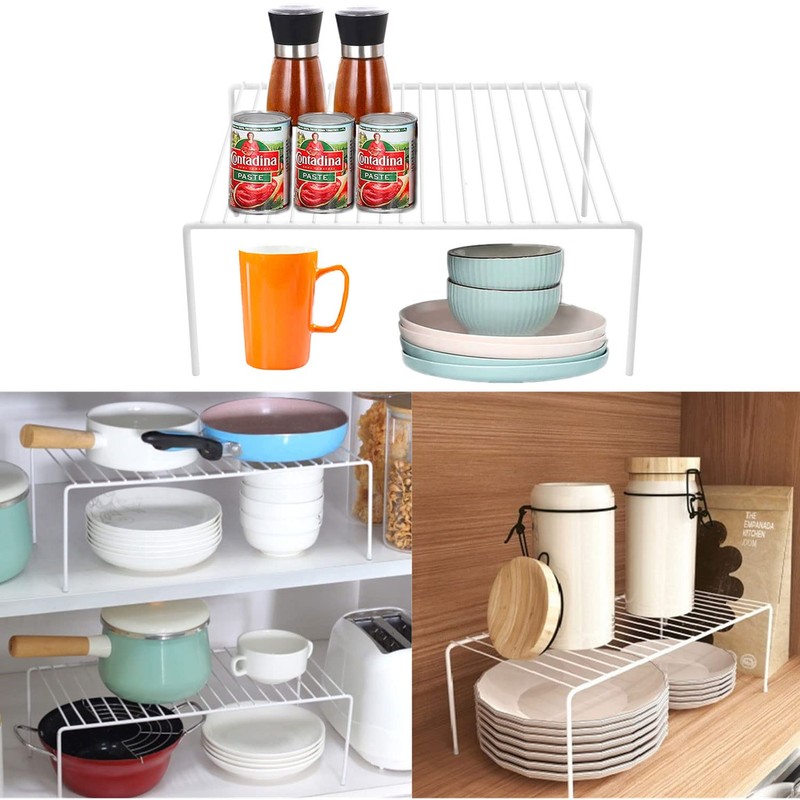 - ✅【Kitchen Storage Helper Shelves】: This wire shelf rack will double your storage space. More efficiently use the space of pantries, cabinets, cupboards, or under a sink. Great for stacking plates, dishes, bowls, cups, and other canned/boxed foods.