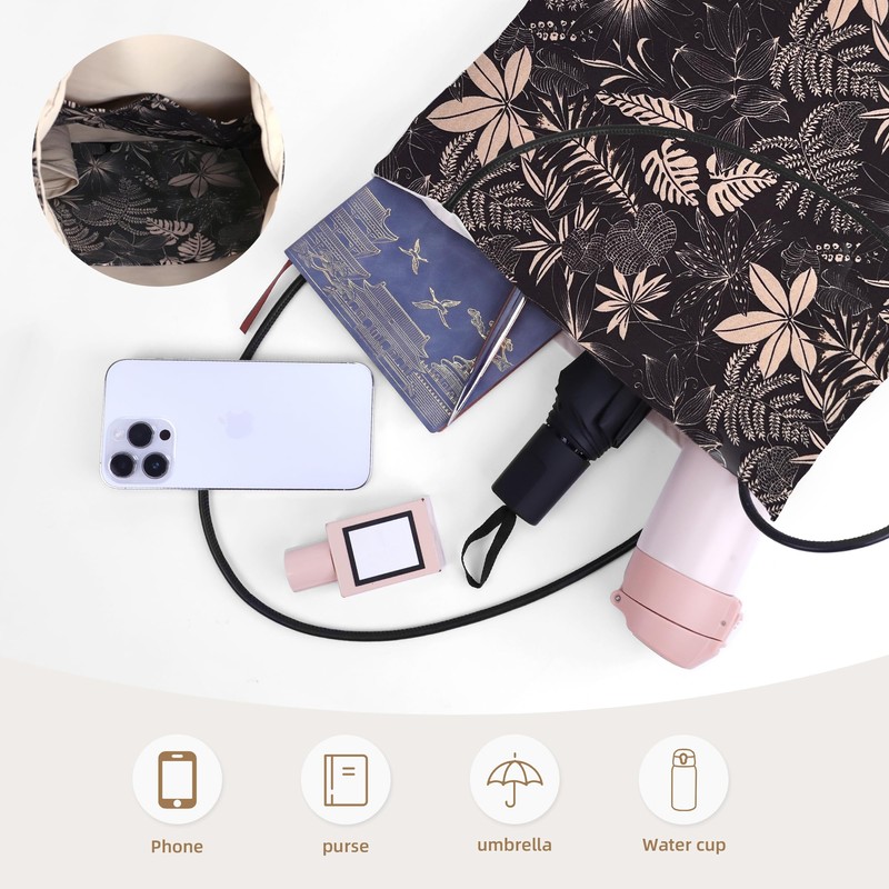 - 【Large Capacity】Size: 34*37cm/13.3*14.5inch (L * H ), handle height: 27cm/10.6inch.It has a lot of space inside, with 3 small open pockets and a pocket with zipper, and a place for water cup. It helps to place items more conveniently and rationally allocate the space used in the bag. It can hold your cell phone, wallet, Ipad, umbrella, water cup , books and other daily necessities. Warm tip: the main pocket has no zipper.