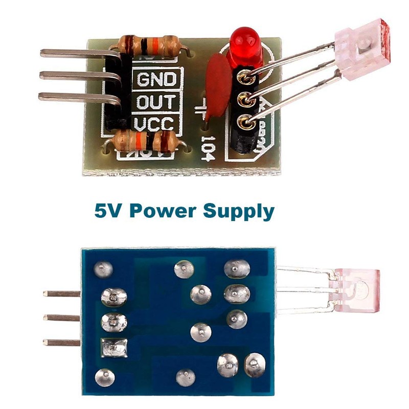 - 5V laser receiver sensor module relay switch for Arduino, it is a non-modulated laser receiver module, has two layer circuit board, has space for a mounting hole.