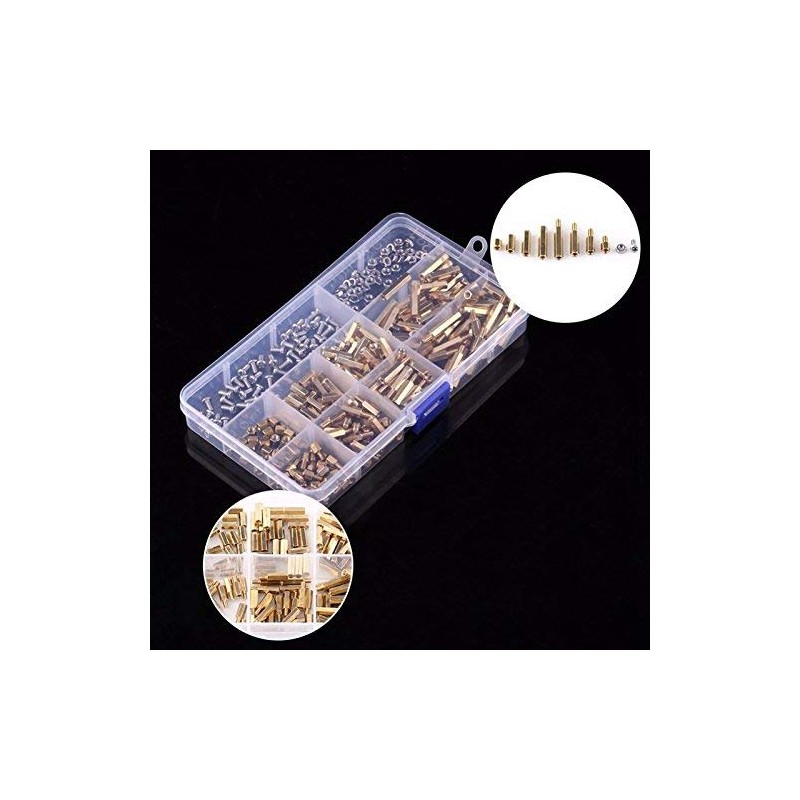 ARCELI M3 真鍮 六角柱 スタンドオフ スペーサー スクリューナット 詰め合わせキット ボックス付き 300個