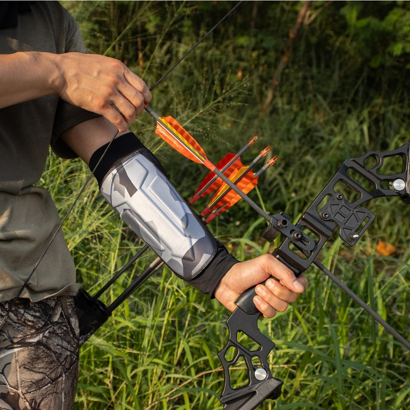 - [Thickened Pad] The outer side of the protective sleeve is specially thickened with arrow shaped padding, high-density cushion effectively protects your arms from being injured by the bowstring.