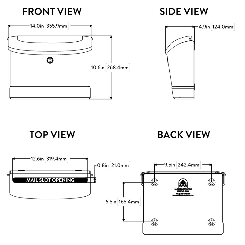 - Mailbox is 14 in. W x 10.5 in. H x 4.9 in. D