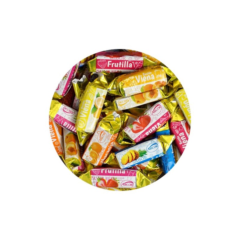 - Arcor Vienna Fruit Filled Hard Candy: Arcor's renowned fruit-filled candies combine a crisp, sugary shell encasing a soft, fruity center. Each piece is individually wrapped, offering a satisfying crunch on the outside with a chewy, flavorful fruit filled surprise inside.