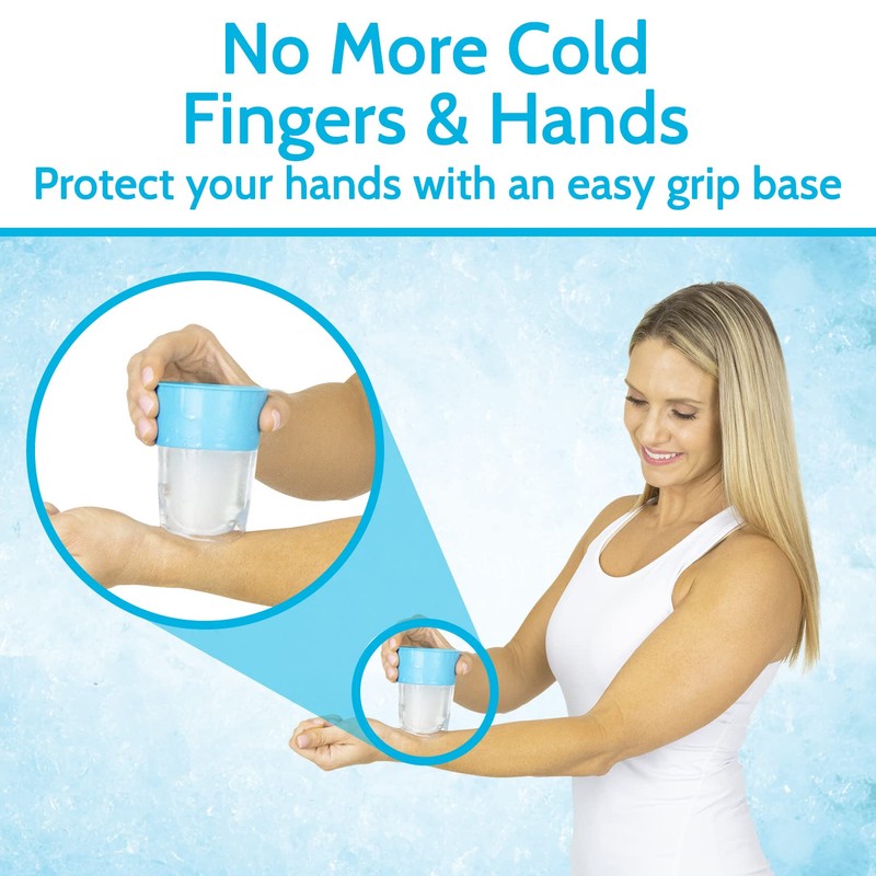 - EASY TO GRIP BASE: Protecting your hand from the ice, the ice cup massager separates to reveal an easy to grip base. The exterior of the base features a textured pattern to provide a nonslip grip while in the interior of the base is lined with spikes to securely hold the curved ice in place. Measuring 2.9” in diameter, the ice cup massager holder also fits comfortably in the hand.