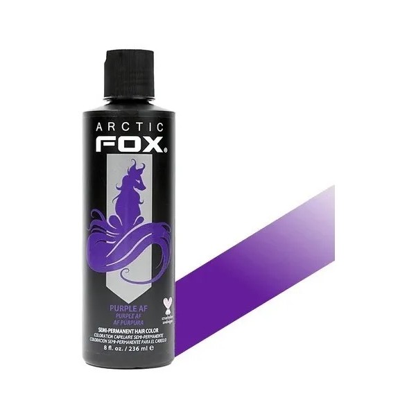 El Arctic Fox Purple AF es un tinte semipermanente de 236 ml que destaca por su tono morado profundo y auténtico. Anteriormente conocido como "Purple Rain", este color versátil se adapta a una variedad de bases, desde rubio platino hasta castaño claro, proporcionando matices intensos incluso en cabellos más oscuros. Además, es eficaz para cubrir colores desvanecidos.