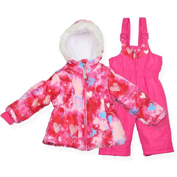 Arctic Quest Little Girls Bib Snow Pants and Ski Jacket Water-Resistant Snowsuit For Kids Winter Jacket For Girls, Pink 2 Intense, 4