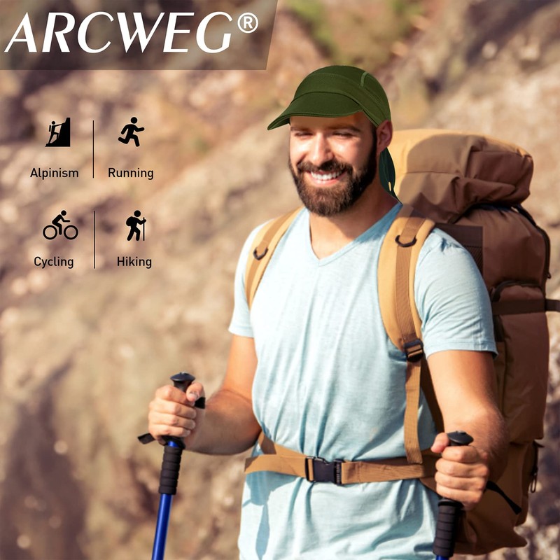 Arcweg Bandana Cap, Head Scarf with Visor, Breathable Pirate Cap, UV Protection, Adjustable, Biker Cap, Cycling Cap, Quick-Drying, green