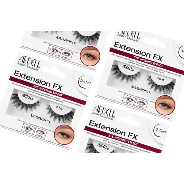 Ardell Extension FX D Curl False Eye Lashes for Eye Widening Effect, 4 pack