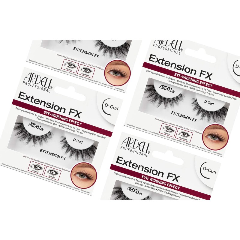 • MADE IN THE US, CRUELTY-FREE, 4 PACKS REUSABLE FALSIES: Straight from Ardell - your Hollywood A-list trusted beauty brand. 4 packs of full volume falsies are easy to use and remove! Great value for money with its easy application, high-grade quality, and portability. Totally reusable and will last for multiple applications when stored properly. Not only that! Ardell Extension FX D Curl False Eyelashes are 100 % cruelty-free, never tested on animals - proudly made in the USA. What’s not to love?