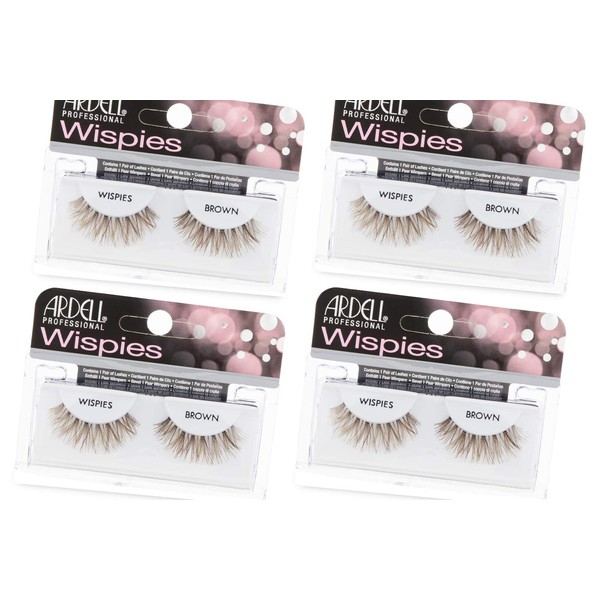 Ardell Wispies False Eyelashes - Brown, Natural Look Wispy Lashes, Lightweight & Reusable Strip Lashes, 4 Pack