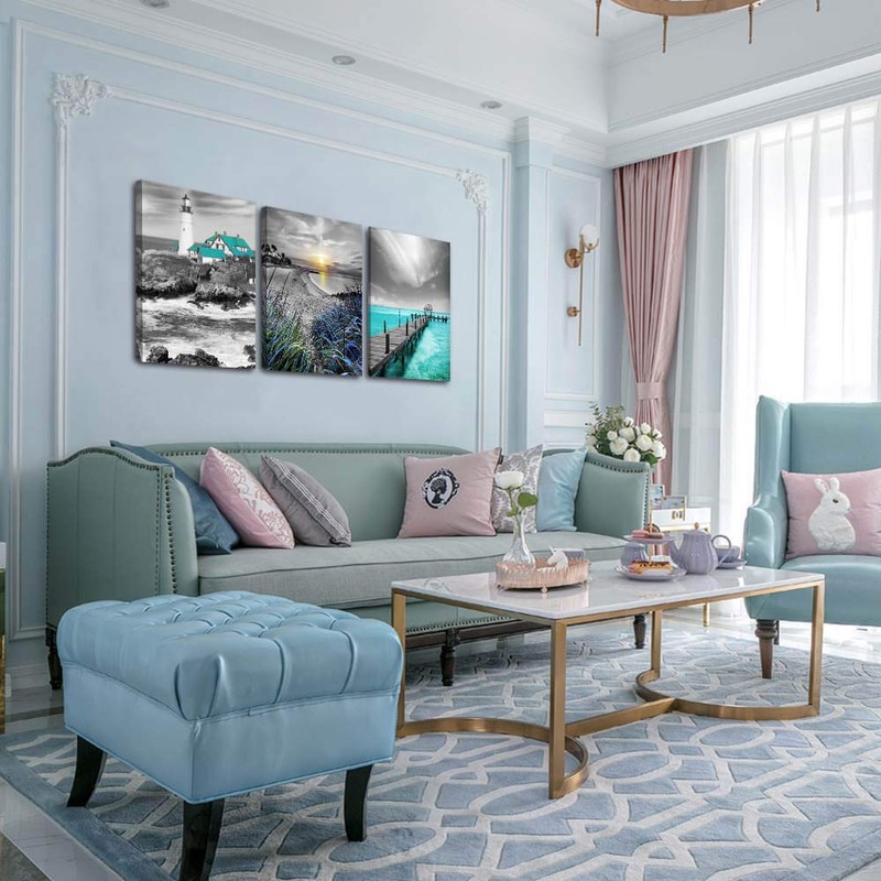 - 🐋Guarantee: Canvas teal lighthouse pictures prints are packed in carton box.