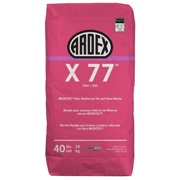 ARDEX X 77™ MICROTEC® Fiber Reinforced Tile & Stone Mortar – Gray, 40 lb | High-Performance Mortar for Large Format & Specialty Tile