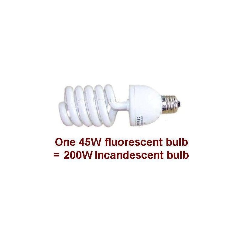 2 x 45W 5500K fluorescent light bulbs (equivalent to 400 watts of incandescent bulbs)