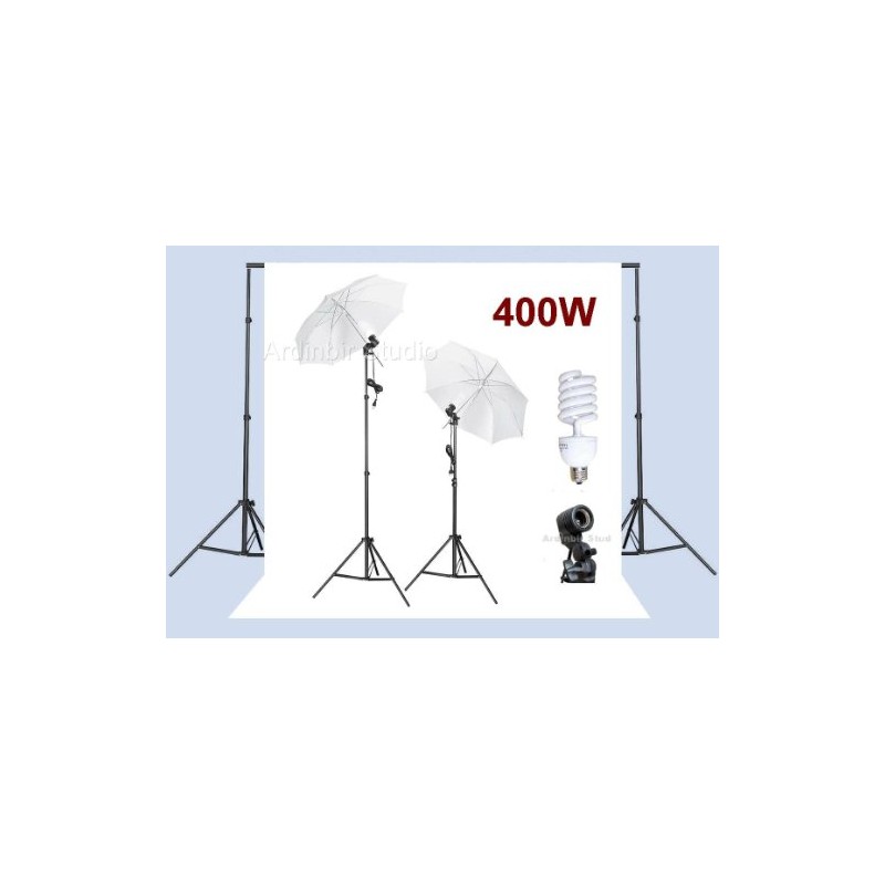Ardinbir Studio Photo 400w Continuous Light White Umbrella Lighting Kit and Background Backdrop Support System