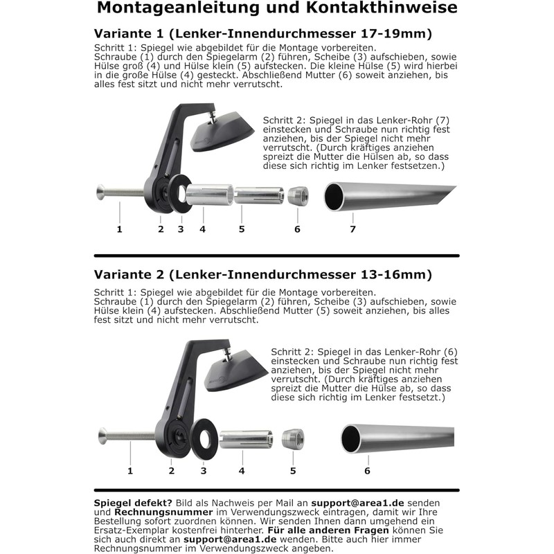 - Weitere nützliche Hinweise zur Montage, z.B. bei vorhandenen Gewinden im Lenker-Rohr, oder zur Nutzung/Befestigung mit den Originalen Lenkerenden, finden Sie unten am Ende der kompletten Artikelbeschreibung.