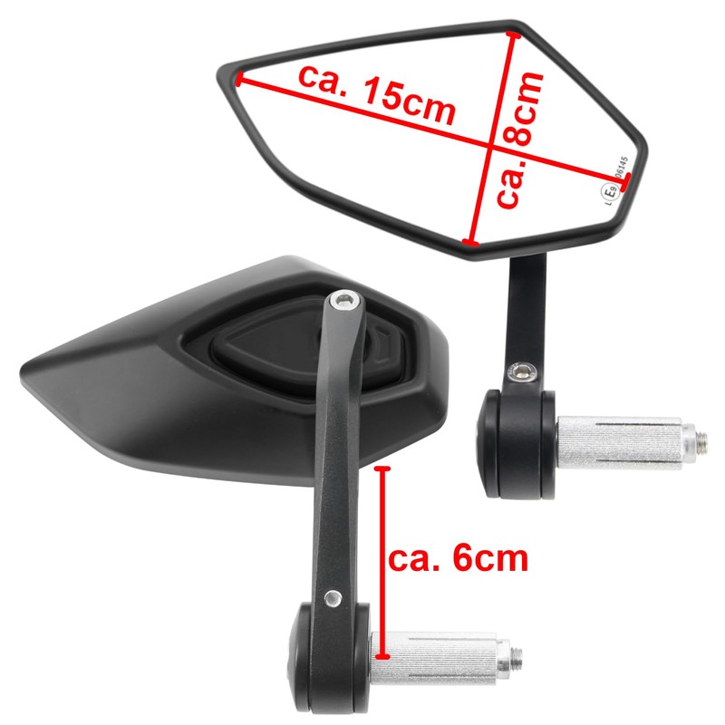 - Hochwertige Rückspiegel von Area1, die deutsche Spitzen-Marke für qualitativ hochwertige Motorrad- und Motorroller-Zubehörteile. Es wird ein Set mit 2 Spiegeln geliefert (Rechts+Links) Mit E-Prüfzeichen. Legal ohne extra TÜV-Eintragung verwendbar.