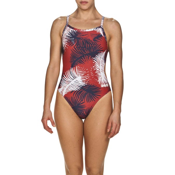 ARENA Palm Forest Challenge Back MaxLife One Piece Swimsuit, Red - White - Blue, 24