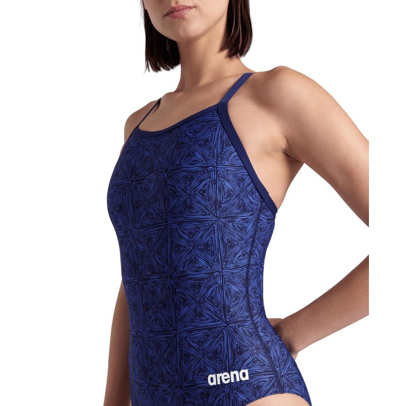 ARENA Women's Standard Performance Abstract Tiles Light Drop Back Swimsuit, Navy/Team Royal