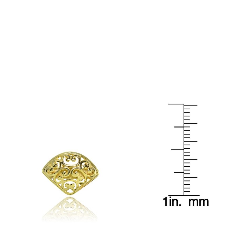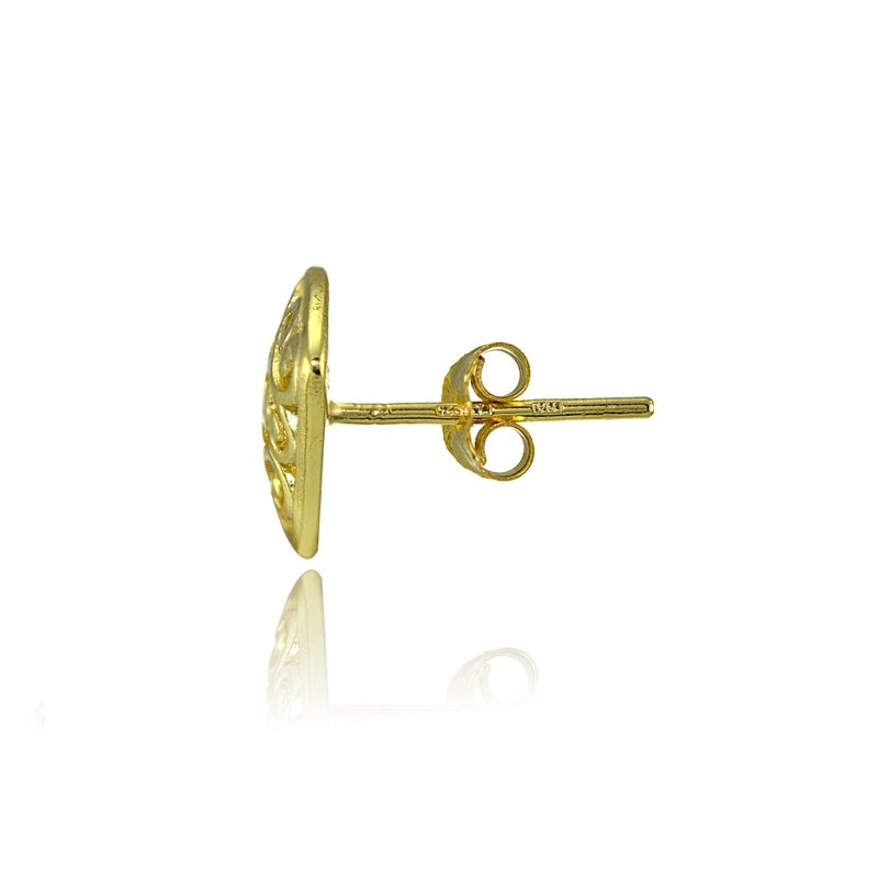 - Estos impresionantes arete cuentan con un diseño de filigrana en forma de abanico perfecto para un aspecto clásico. Están asegurados por un poste con parte trasera de fricción.