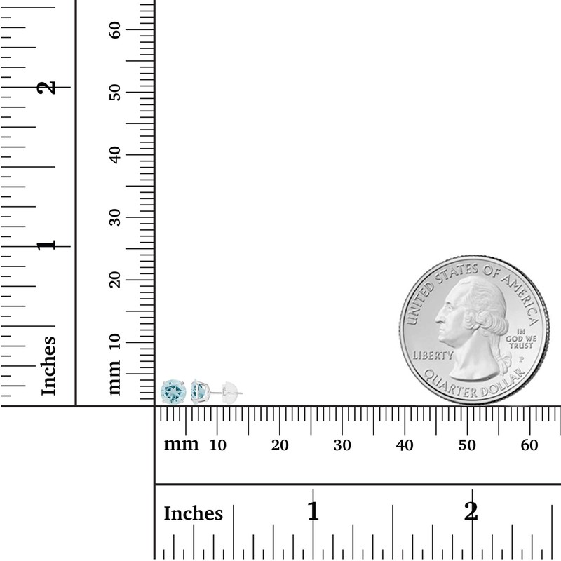 arete de tuerca redondos de oro de 10 quilates con piedra natal natural, 6 mm, Gema Oro de 10 quilates Piedra preciosa, Aguamarina