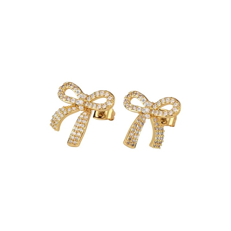 Nombre: Aretes Mujer Oro 14k Zirconia Moños Coquette LuckyLy