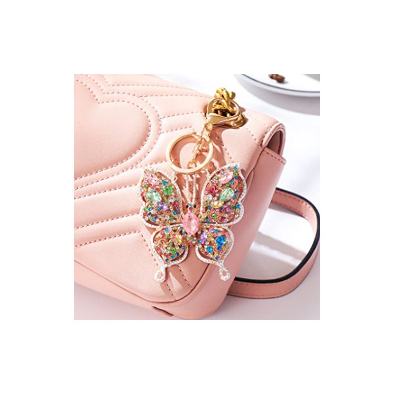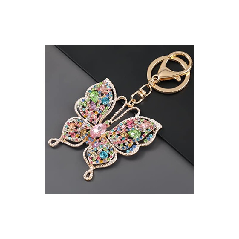 ARFUKA Keychain Rhinestone Butterfly Pendant Keyring 3d Animal Iced Out Metal Key Ring Charm Jewellery Christmas Birthday Gift Keychains Key Chain Key Ring Holder for Men and Women