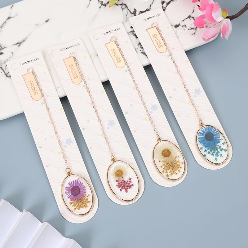 ARFUKA Pack of 4 Bookmark Clips Dried Flowers Metal Bookmark Gifts for Teachers Students Book Lovers
