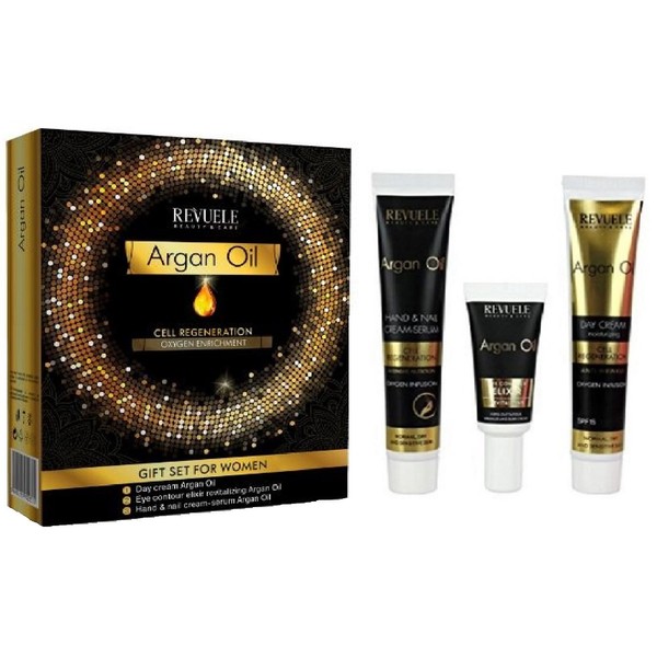 Argan Oil is usually can be used as a skin moisturiser to the skin soft and hydrated at the same time fighting the signs of skin ageing. This natural ingredient is extremely durable it is rich in Ungesa we Ttigten Oligo Fettsa acids, linoleic acid and omega 6 and omega 9 acids, as well as antioxidants, vitamins A, E, F and fungicide. With regular use Argan oil: , active regenerates and nourishes the skin and protects from dryness , speeds up the Heilungs and regeneration process , improves the skin's elasticity and smooths wrinkles , relief from inflammation and skin conditions such as rosacea and eczema. To prevent the appearance of uneven pigmentation, age spots and other signs of photoaging. Argan Oil Day Cream Volume: 50 ml; moisturising, anti-wrinkle moisturising cream enriched with argan oil has been specially designed for withering, tired, stressed skin with redness and peeling. It reduces facial wrinkles and helps to prevent the signs of premature skin ageing. Eye Contour Elixir Revitalising Argan Oil Contents: 25 ml for reducing fatigue, wrinkles and dark circles under eyes Verjüngungselixier is specially designed to protect the delicate skin around the eyes against the negative effects of external factors and free radicals, even without the signs of aging. The skin around the eyes is elastic and taut. Instant Action Elixir brings the skin around the eyes all in one. Light texture absorbs quickly into the skin and helps it, to remove dark circles under the eyes, relieves pain, soothes and relaxes the eye skin. Hand & Nail Serum Argan Oil Volume: 50 ml regenerating face cream serum with anti-ageing formula Active regenerating face cream serum is suitable for all skin types and has strong anti-ageing formula which absorbs deep nourishes and moisturises the skin. Argan Oil in basic product formula has a positive effect on the recovery of the nails and cuticles, stimulates natural skin regeneration and has a pronounced anti-aging effect. A large Christmas gift idea.