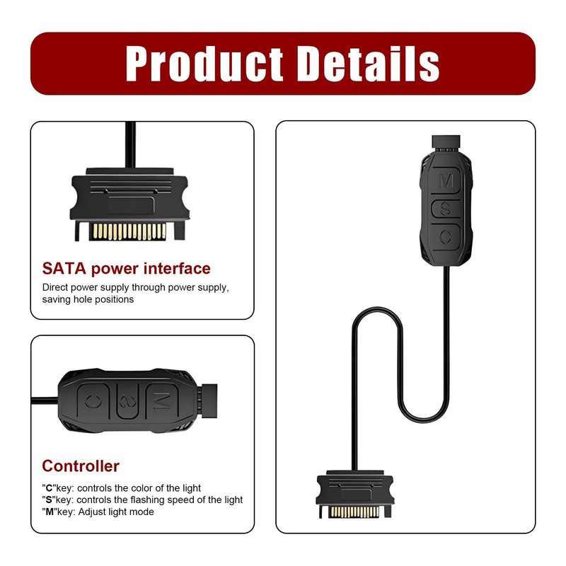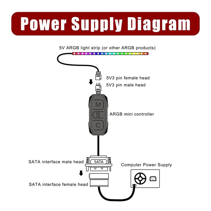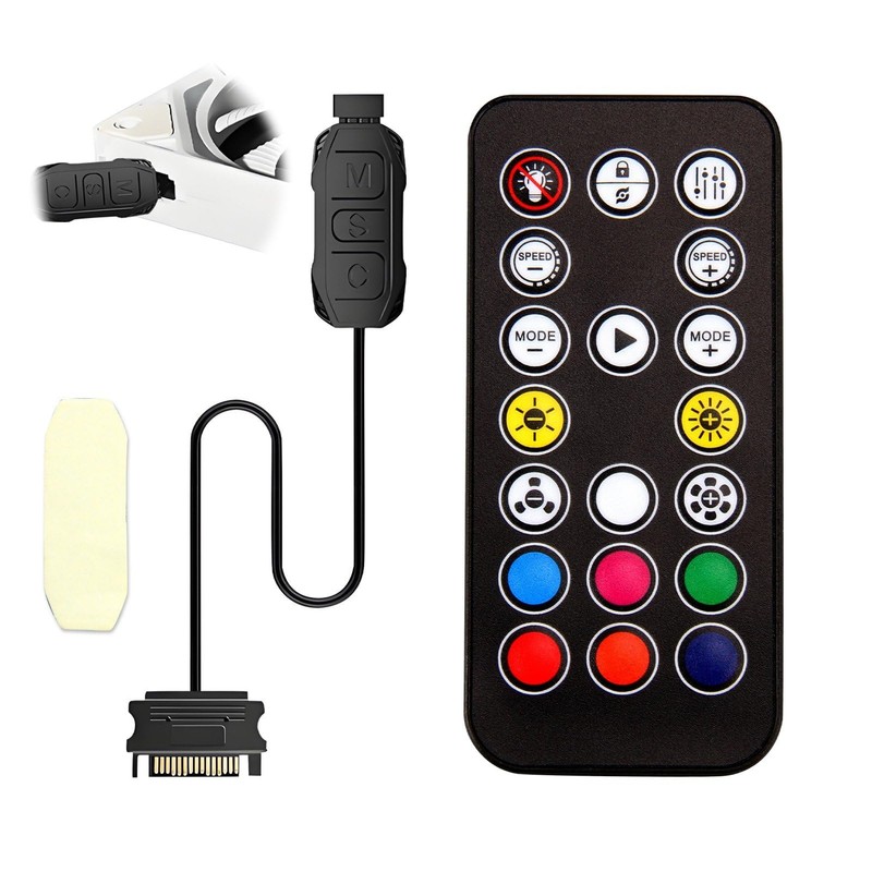 - UNIVERSAL COMPATIBILITY - Plug and play enabled RGB controller with remote control. Connect to 5V ARGB 3-pin devices (RGB fan, PC LEDs, strips), on the other hand with SATA power supply. Supports all 5V 3-pin interfaces.