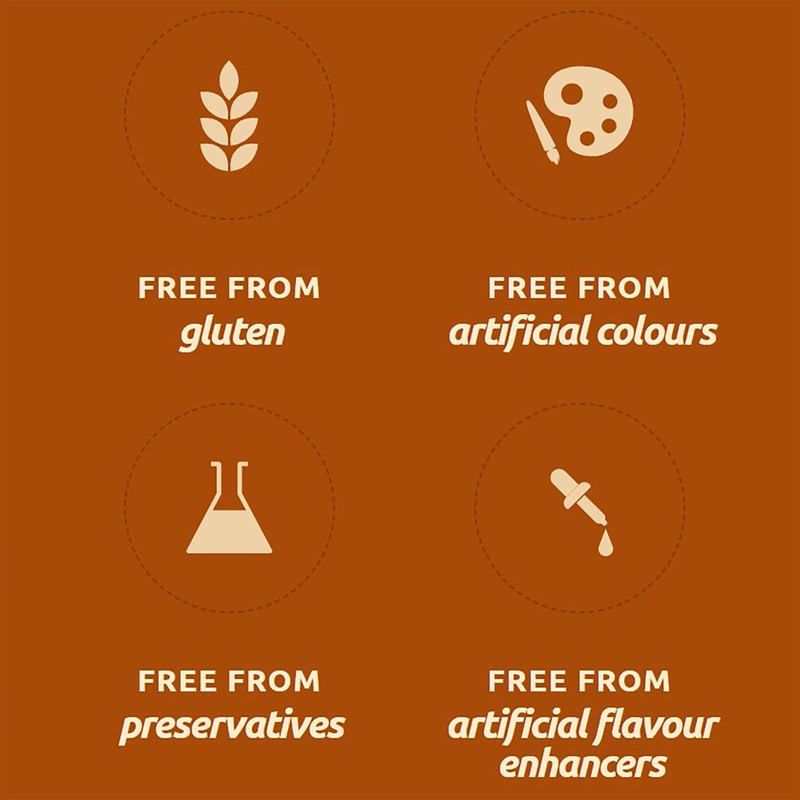Half century recipe made with chicken meat. enriched with milk and soy proteins, and seasoned with selected natural spices.
