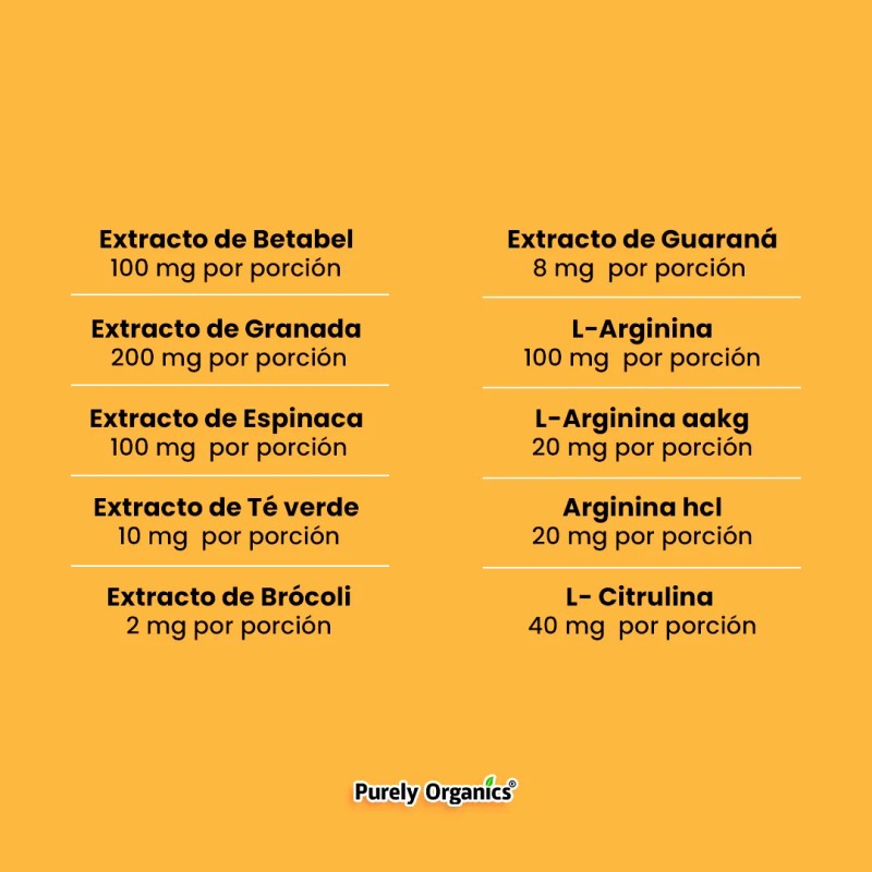 La fórmula exclusiva de Arginina Gold Vegana incluye betabel y granada, conocidos por sus propiedades antioxidantes y su capacidad para apoyar la producción de óxido nítrico. Este suplemento es ideal para deportistas, personas activas y cualquiera que desee mantener un estilo de vida saludable. Además, es completamente vegano y libre de gluten, sin lactosa, asegurando su adecuación a diversas necesidades y preferencias dietéticas.