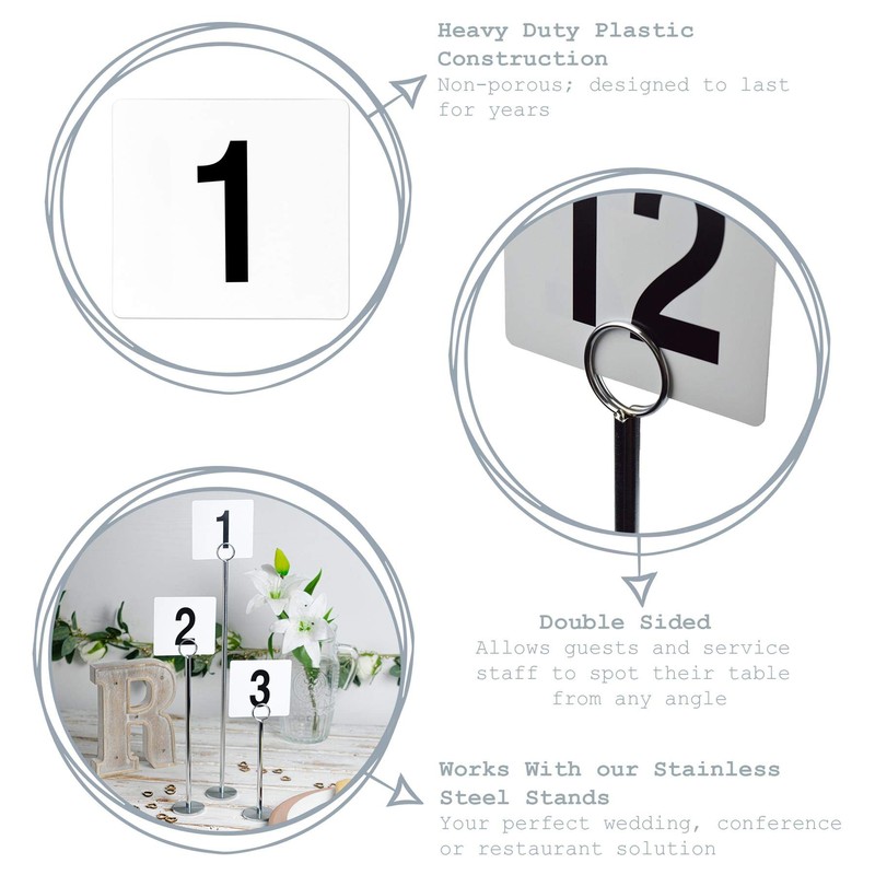 - Designed to work perfectly with our Silver Stainless Steel Table Number Holders, these cards have been constructed from heavy duty plastic for maximum durability.