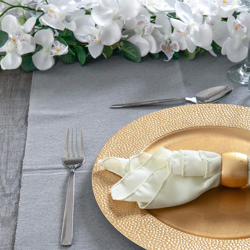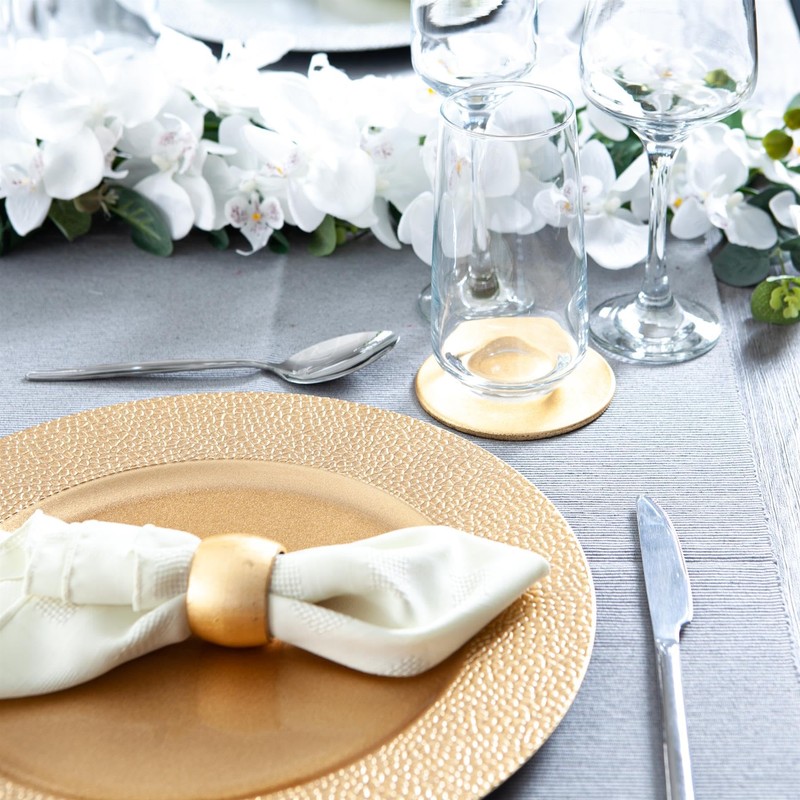- ELEGANT GLOSSY METALLIC FINISH - The glossy metallic finish enhances the aesthetic of your table and offers a classic hue and texture that can be paired with white linens for subtle elegance or jewel tones for a more luxurious look.