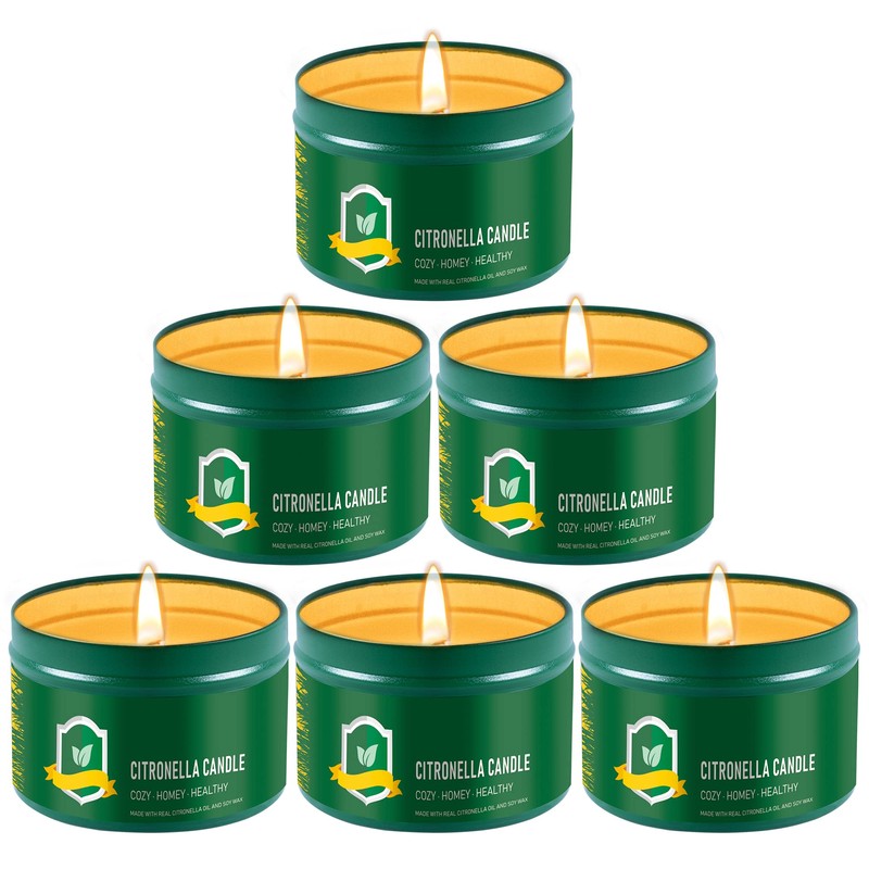 - Long Lasting: Pack of 6, and each citronella candle contains 4.4 oz soy wax, long last burning time for 25 hours. Total 150 hours.