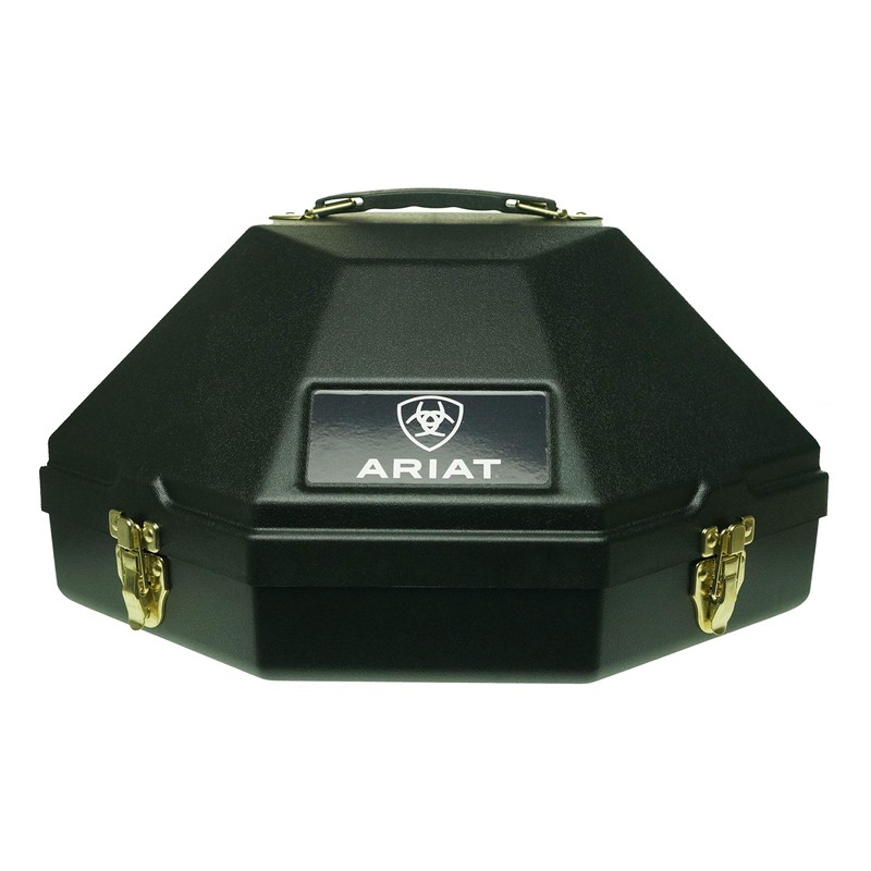 Ariat Hat Can: Are you traveling with your show hat? Need protection for your hat from a sudden onset of rain? Then you need this quality designed Ariat hat can by M&F Western Products. Lightweight and easy to travel with and it offers great protection for that hat you love so much! Holds up to size 7 5/8" with 4" Brim OR will hold up to 6 3/4" with 4 1/2" inch Brim. It is made with a hard plastic and has a flip latch closure. A01503