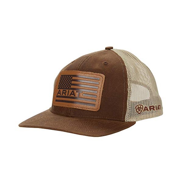 ARIAT Oilskin USA Flag Leather Patch Cap Brown One Size