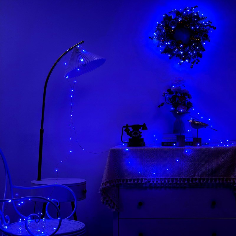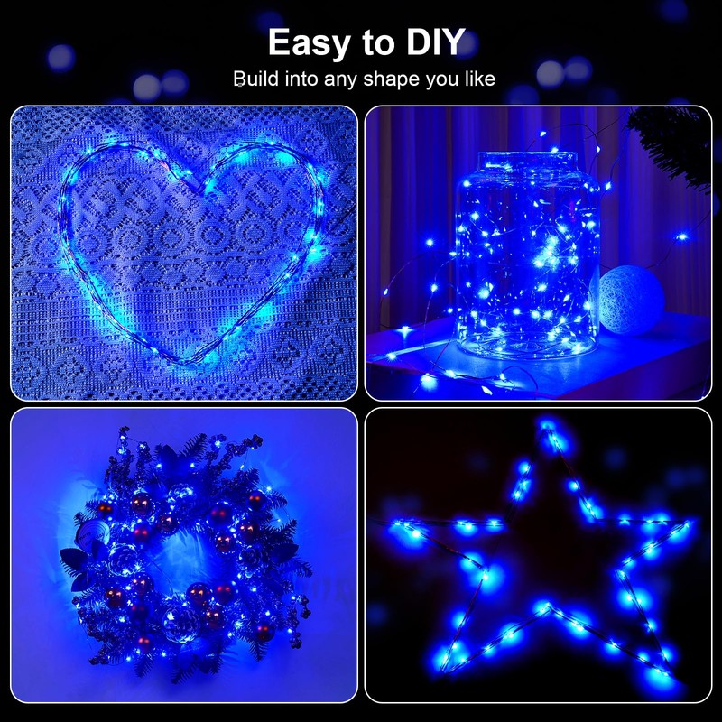 Ariceleo 1 Pack 16.4ft Battery Operated String Lights with Timer, Blue with Synchronized Twinkle Mode, Fairy Lights Battery Powered, 50 LEDs, Idea for Christmas Bedroom Party Wedding