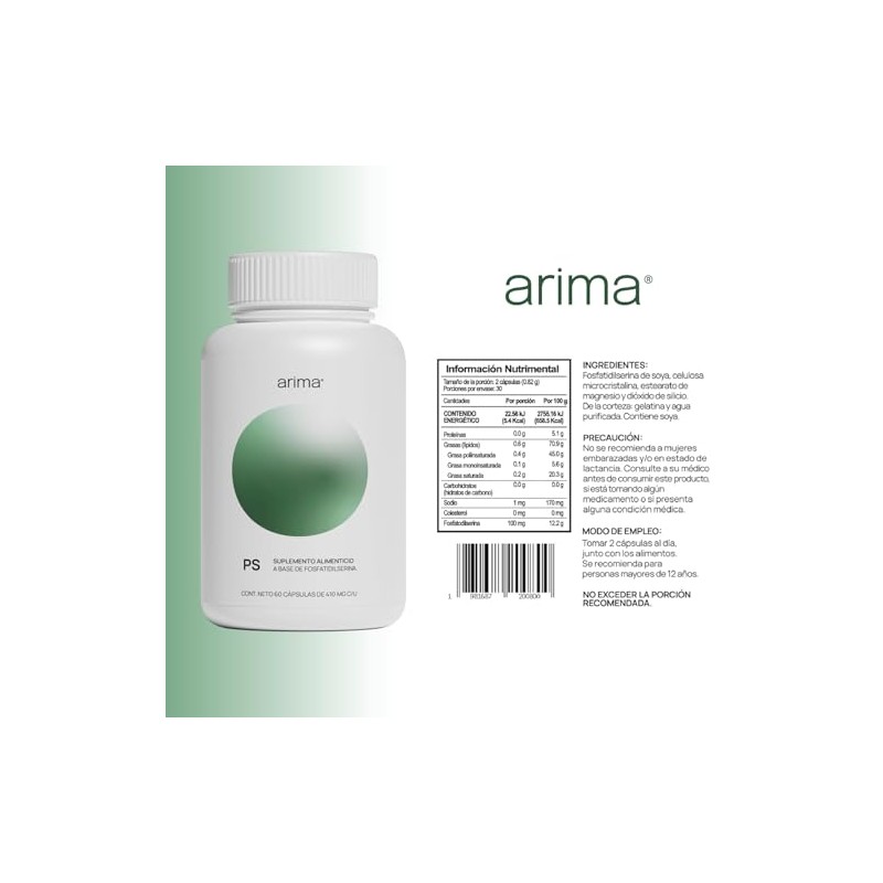 ARIMA PS Fosfatidilserina Suplemento Natural para Memoria, Concentracin y Manejo del Estrs Claridad Mental Sin Aditivos Suplementos Alimenticios