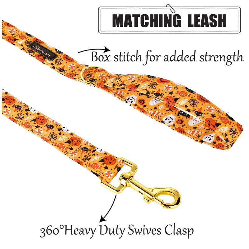ARING PET Halloween Dog Leash, Pumpkin Ghost Leashes Matching Collars for Small Medium Large Dogs and Cats-XS