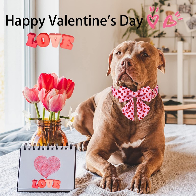 - [WELL MATERIAL]:❤The Valentine's Day dog collar with bowtie is made of cotton, which is very Cute and comfortable, and it won't hurt the dog's skin. ❤At the same time, cotton cloth is easy to clean. And We recommend hand washing to avoid the metal buckle being scratched in the washing machine.