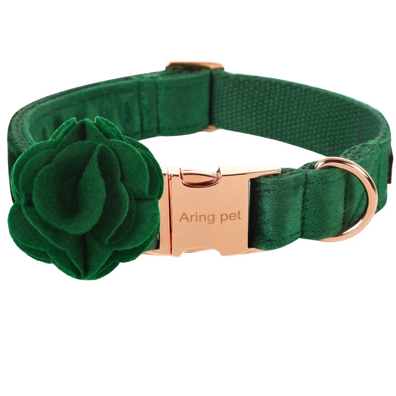 ARING PET Velvet Dog Collar, Cute Christmas Dog Collar with Felt Flower, Adjustable Green Dog Collars Flower with Metal Buckle for Small Medium Large Dogs